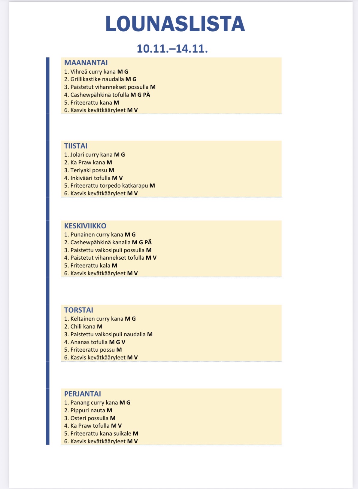 Lounas tarjoilu 10.30-14.30 Tervetuloa!